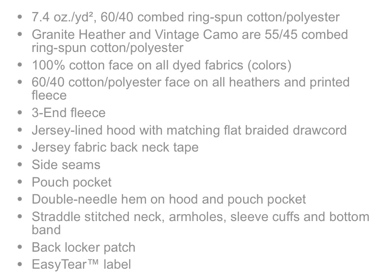 - 6.7 oz./yd², 55/45 cotton/polyester French terry